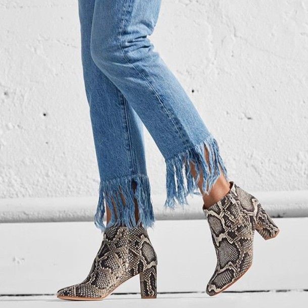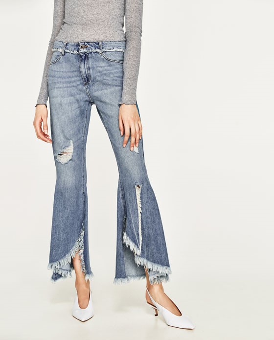 Frayed jeans. This is a fairly new trend where the bottom of the jeans looks undone. The fray can vary from a very subtle to a very exaggerated fray. This torn hem takes on a variety of styles like flared, cropped, straight cut, skinny and even slit denims. Don’t be afraid to wear your best pair of booties with a pair of frayed jeans this winter as this frayed hem highlights and brings attention to your shoes.